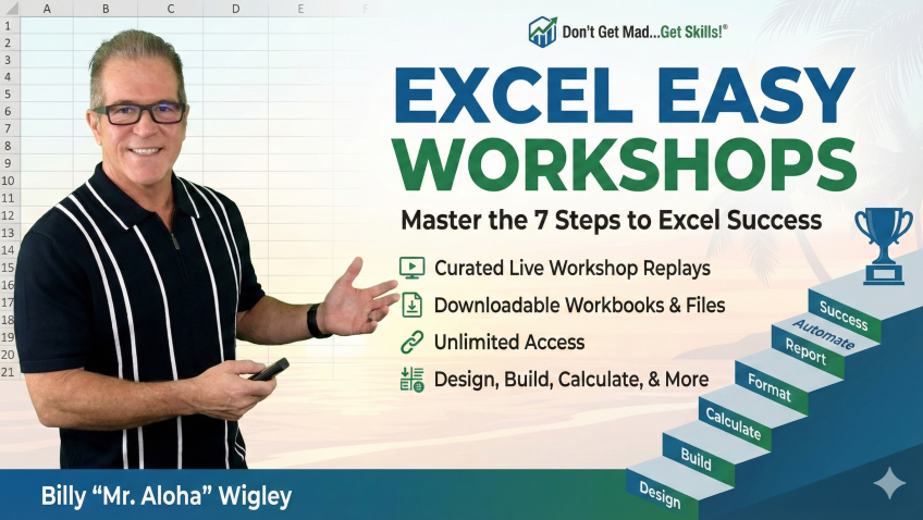 Curated Library Of The Excel Easy Workshop Series - You will find all the replays and be able to download the Excel workbooks used in the workshops.